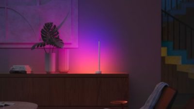 The slim, simple design of the Gradient Signe lamps hides a secret: the brilliant mix of multi-colored light. Place the Philips Hue Gradient Signe Table Lamp anywhere in your home to decorate it with color, create a unique environment and relax with unique colors.