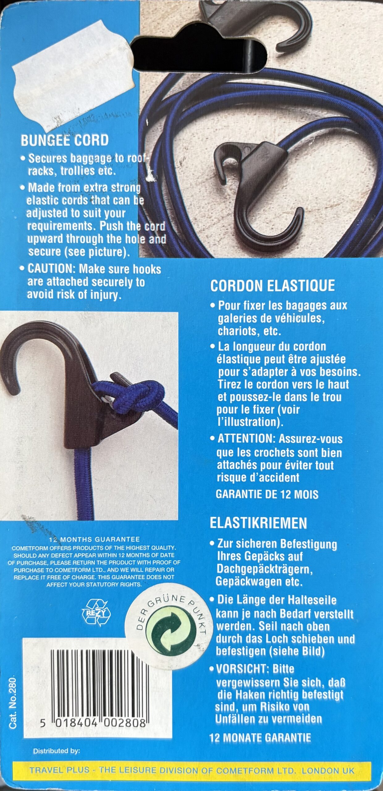 Ελαστικό κορδόνι για συγκράτηση αποσκευών. Μπορείτε να στηρίξετε με απόλυτη σταθερότητα μεγάλες αποσκευές είτε σε κάποια σχάρα αυτοκινήτου είτε σε κάποιο δίκυκλο ή και σε μετακόμιση.