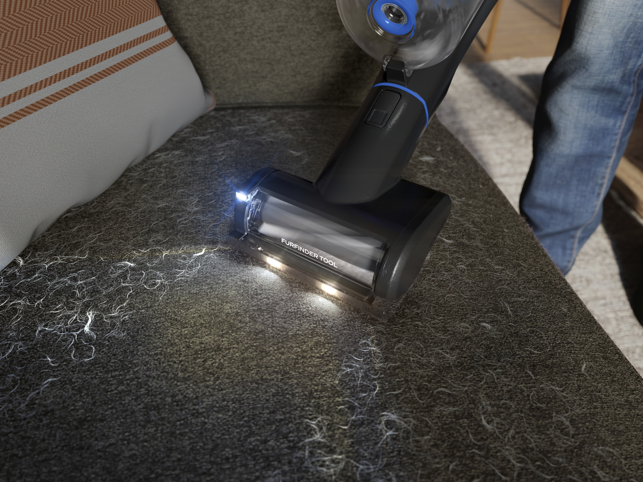 Με την τεχνολογία φωτισμού LED FurFinder μπορείτε να εντοπίσετε 7 φορές περισσότερες τρίχες και σκόνη από μια απλή σκούπα.