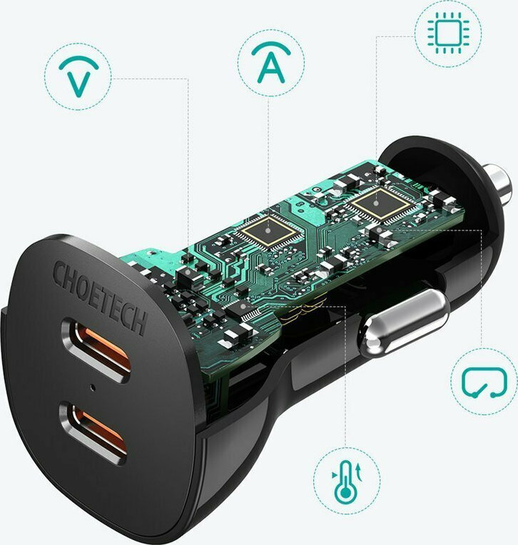 Είναι ο τέλειος φορτιστής αυτοκινήτου. Η Choetech φαίνεται έχει εξοπλίσει το νέο της προϊόν με δύο θύρες USB Type C με υποστήριξη για QC 3.0 και Power Delivery. Έτσι, συνδέοντας το τηλέφωνό σας σε αυτό, θα το φορτίσουμε σχεδόν 2,5 φορές πιο γρήγορα από ό,τι με τους τυπικούς φορτιστές. Επιπλέον, προστατεύει τον εξοπλισμό από υπερθέρμανση, υπερφόρτιση ή βραχυκυκλώματα. Ο φορτιστής είναι μικρός και ελαφρύς, αλλά ταυτόχρονα έχει πολύ συμπαγή δομή.